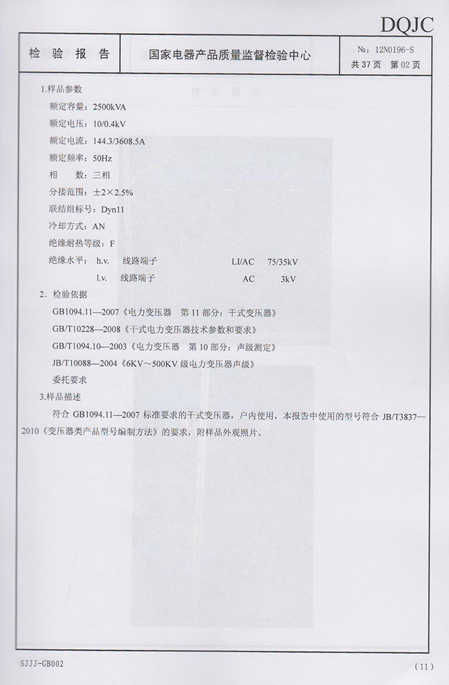 专业提供通过国家型式试验认可的干式变压器产品(型号规格:SCB10-250/10)