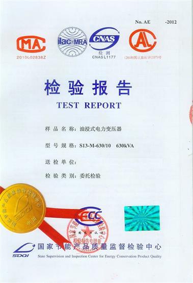 专业提供油浸式变压器产品委托检验服务(型号规格:S13-M-630/20)